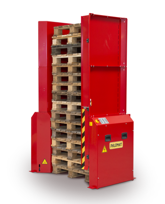 Das PALOMAT®-Palettenmagazin ist ein dänisches Produkt, das seit 1992 in Dänemark hergestellt wird. Es automatisiert die Palettenhandhabung und optimiert Arbeitsabläufe, indem es Paletten stapelt und entstapelt und so Mitarbeiter vor dem schweren Heben von Paletten bewahrt.