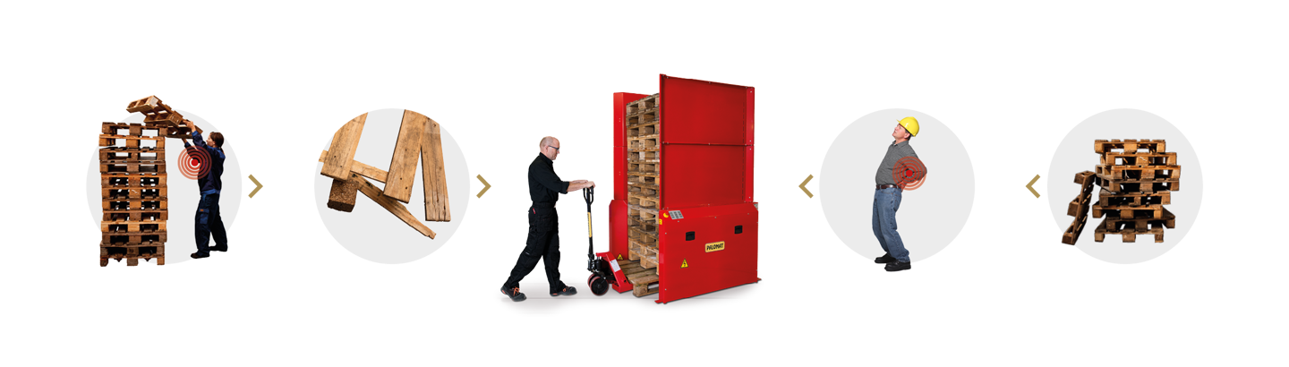 Vermeiden Sie manuelle Palettenhandhabung, verringern Sie Gabelstaplernutzung