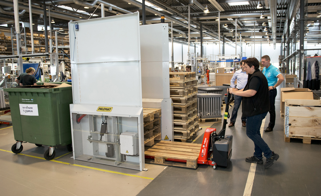 „Jetzt können wir den Hubwagen immer benutzen und die vorherige Gefahr von Arbeitsunfällen durch das schwere Heben wurde beseitigt. Abgesehen davon kann jetzt eine einzelne Person die Handtierung der Paletten durchführen, auch wenn der Stapel hoch ist. Wir haben ebenfalls ein sichtbar mehr strukturiertes Produktionsumfeld erreicht.“, schließt Torben Levisen.