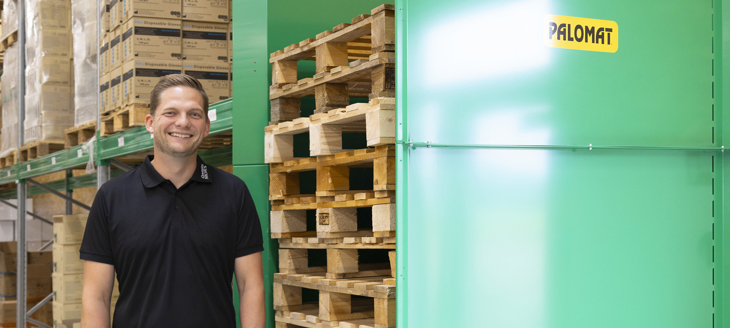 Die Sorge, dass der PALOMAT® keinen Unterschied machen würde, war groß, aber das Potenzial für Gewinne setzte sich durch. Glücklicherweise erkannte das Unternehmen schnell, dass PALOMAT® einfach zu bedienen ist und viele Vorteile bietet. Er macht die Palettenhandhabung schneller und effizienter und schafft mehr Ordnung, wodurch der Lagerraum besser genutzt wird. Kenneth fügt mit einem Lächeln hinzu: „Unsere Mitarbeiter hatten Zweifel, ob wir sie wirklich brauchten, aber sie erkannten schnell, dass sie doch ganz nützlich ist. Sie ist sehr benutzerfreundlich und unkompliziert.“