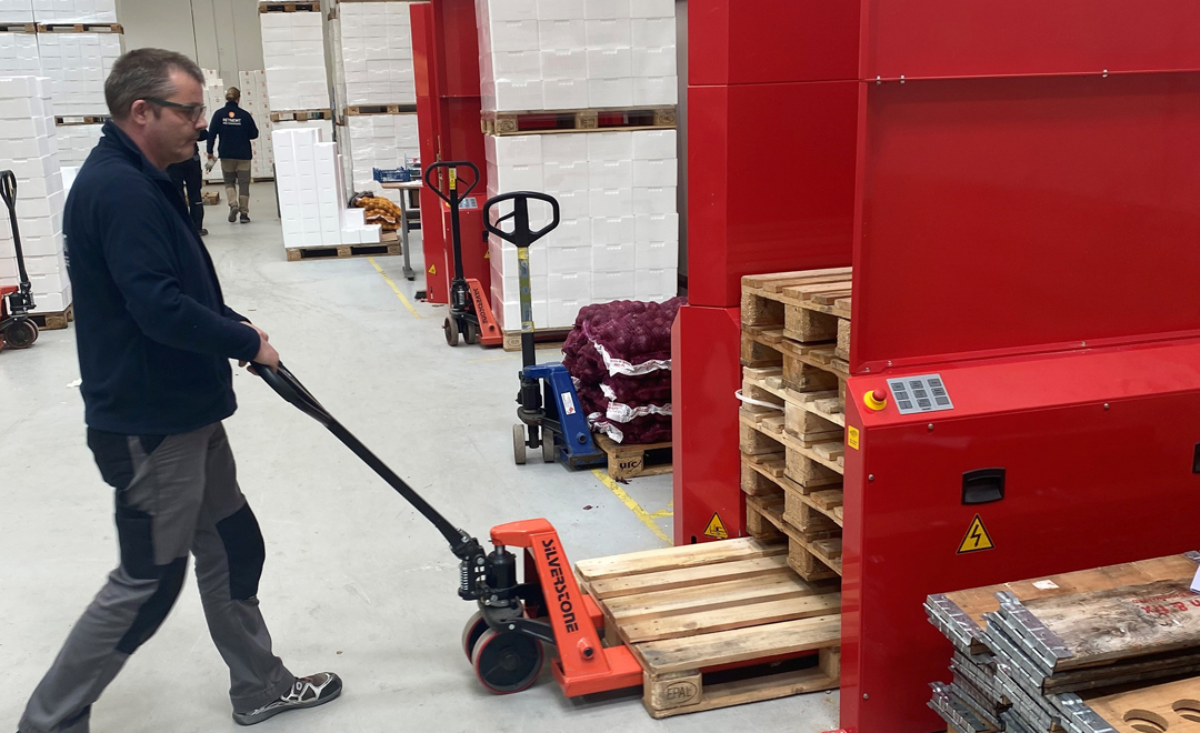 Die beiden PALOMAT® Greenline-Geräte entlasten die Mitarbeiter von RetNemt und haben ihnen eine effizientere Palettenhandhabung und Ordnung verschafft. Die schweren manuellen Pallelifte sind beseitigt, was große Freude bei den Mitarbeitern auslöst. Das PALOMAT® Palettenmagazin trägt dazu bei, arbeitsbedingte Belastungen und Verletzungen zu reduzieren.