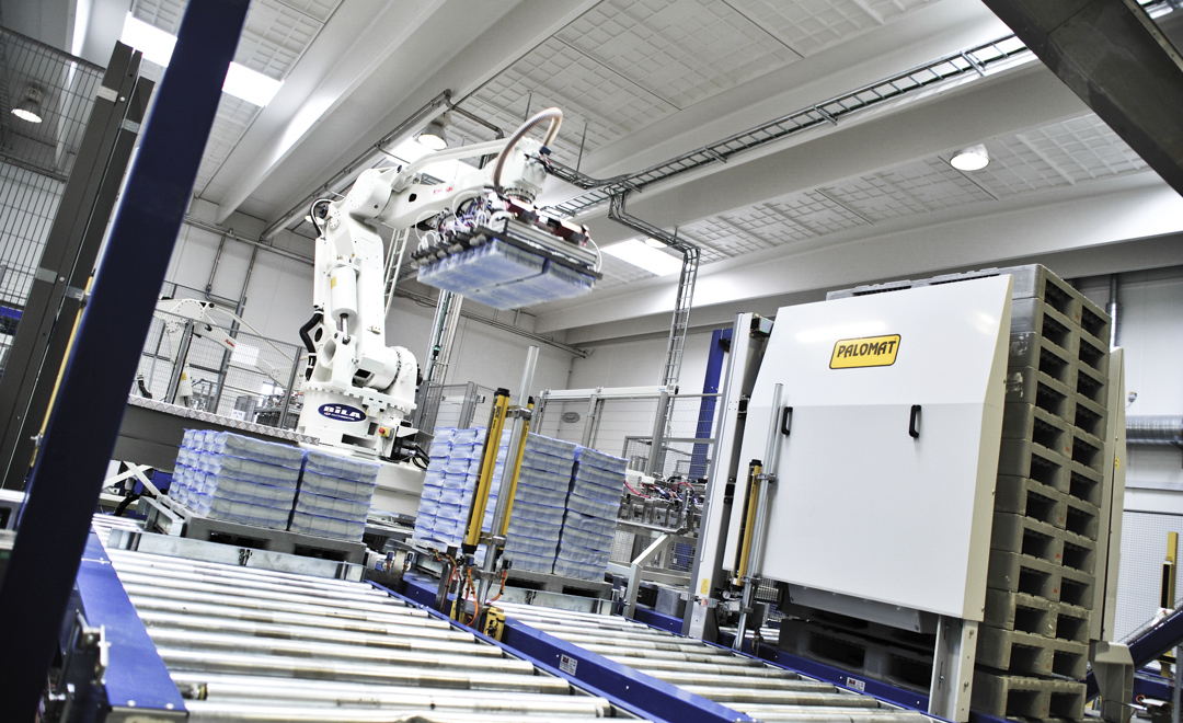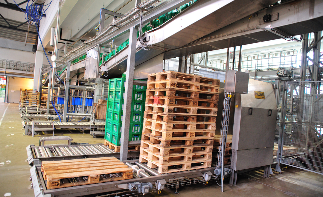 Palettenmagazin in unterschiedlichen Produktionslinien