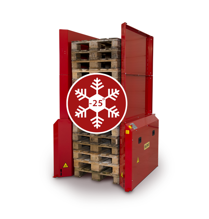Artikelnummer Palettengrösse Hubkapazität Anzahl der Paletten 152601 1200x800x144 500 kg 15 Paletten 152602 1200x1000x150 500 kg 15 Paletten Inkl. Sicherheitsabschrankung für 15 Paletten, 2x Heizungen und Aktuatorfett für den Einsatz bei Minusgraden.