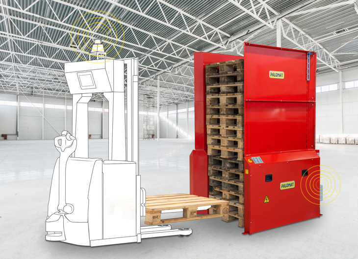 Das PALOMAT®-Palettenmagazin ist ein dänisches Produkt, das seit 1992 in Dänemark hergestellt wird. Es automatisiert die Palettenhandhabung und optimiert Arbeitsabläufe, indem es Paletten stapelt und entstapelt und so Mitarbeiter vor dem schweren Heben von Paletten bewahrt.