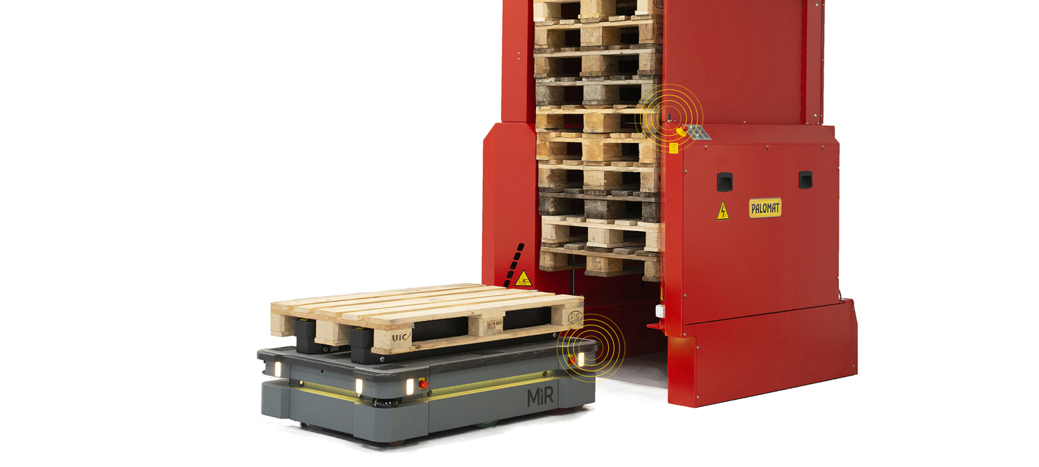 Den Besuchern der großen deutschen Logistikmesse LogiMAT in Stuttgart wird in diesem Jahr eine einzigartige Lösung für die Logistikoptimierung vorgestellt. Zu sehen ist sie bei PALOMAT® an Stand A16 in Halle 7. Hier kommuniziert ein mobiler Roboter von MiR mit dem Palettenmagazin PALOMAT® AMR, das als Palettenpuffer und Dockingstation dient. So wird ein effizienter Flow in der Logistikkette sichergestellt, da im PALOMAT® AMR, der Robotersprache gelernt hat, leere Paletten mit mobilen Robotern jederzeit gestapelt oder abgeholt werden können.